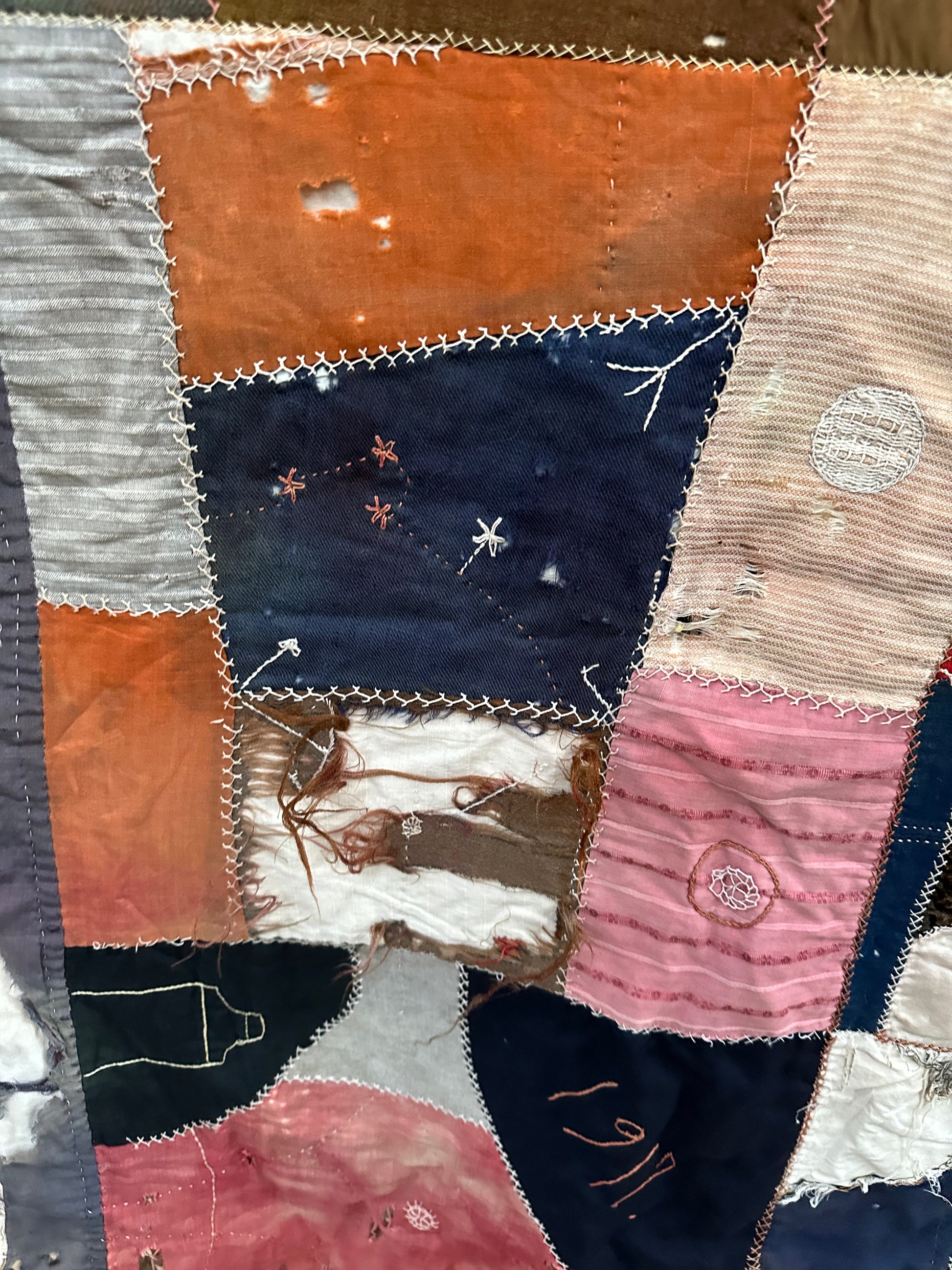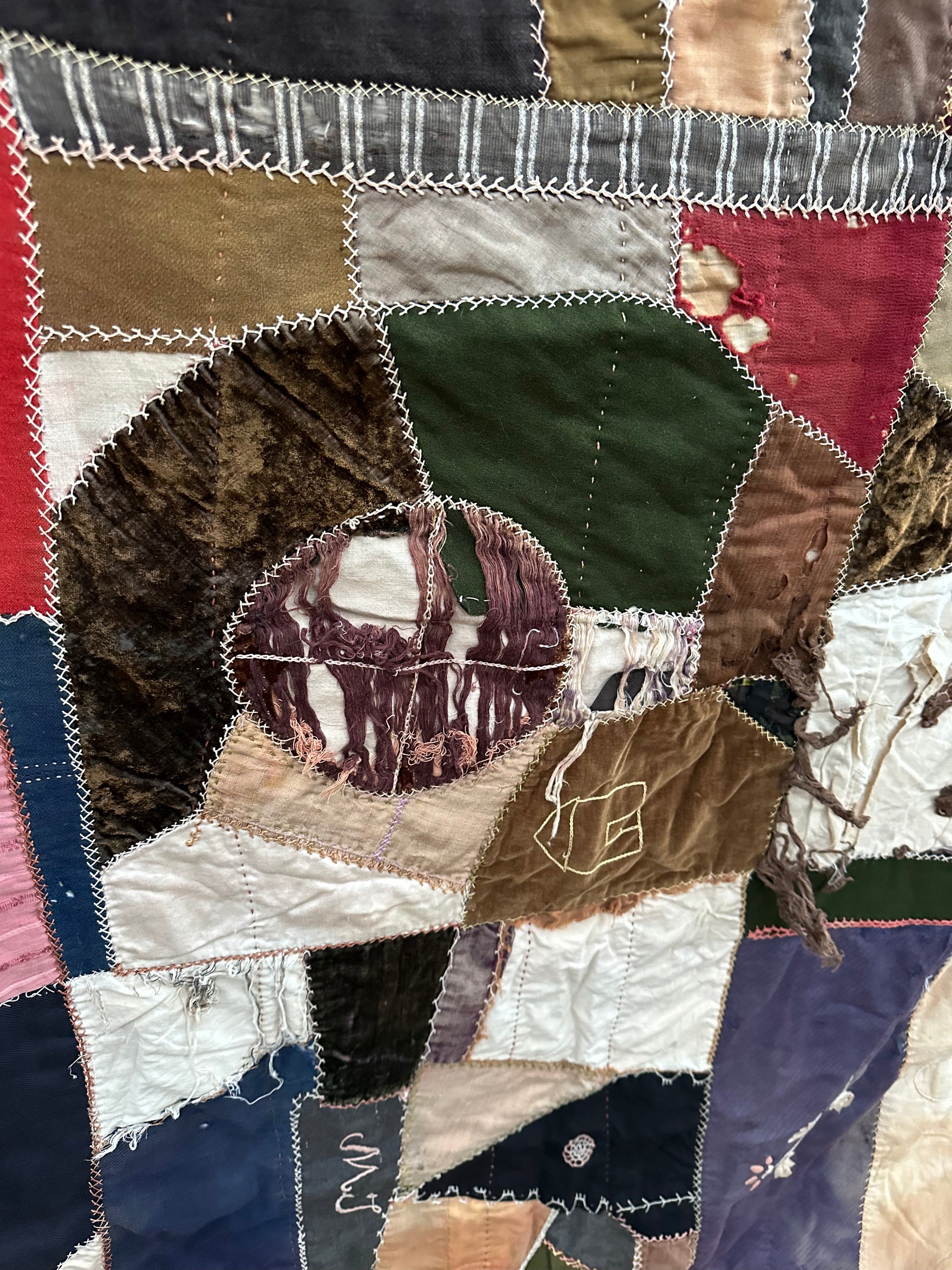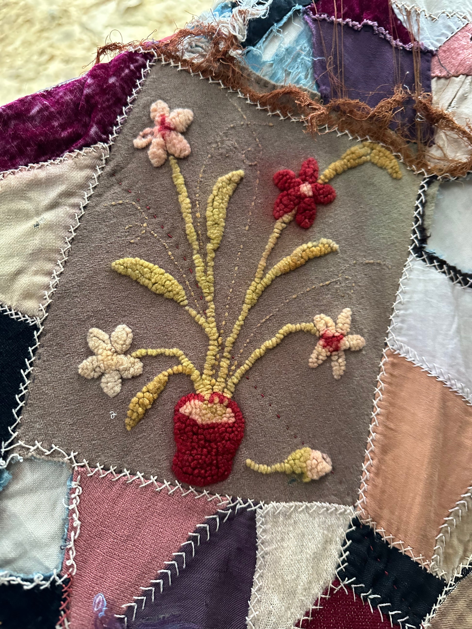 Wonderful 1917 Cotton hand stitched quilt. Very detailed with a ton of hand embroidered details. Embrace wabi-sabi. I will repair with vintage fabric scraps. Amazing Americana! Medium weight.