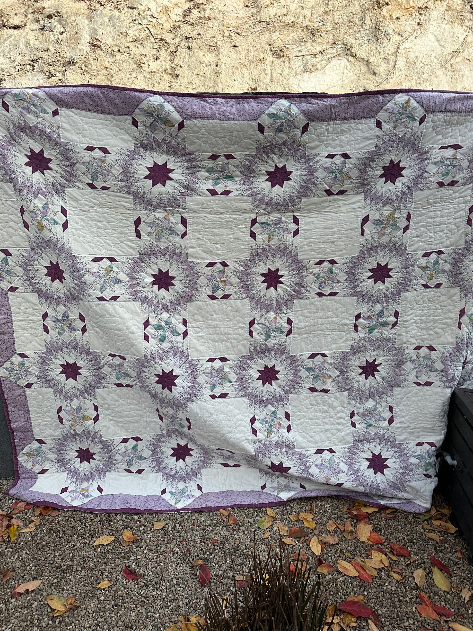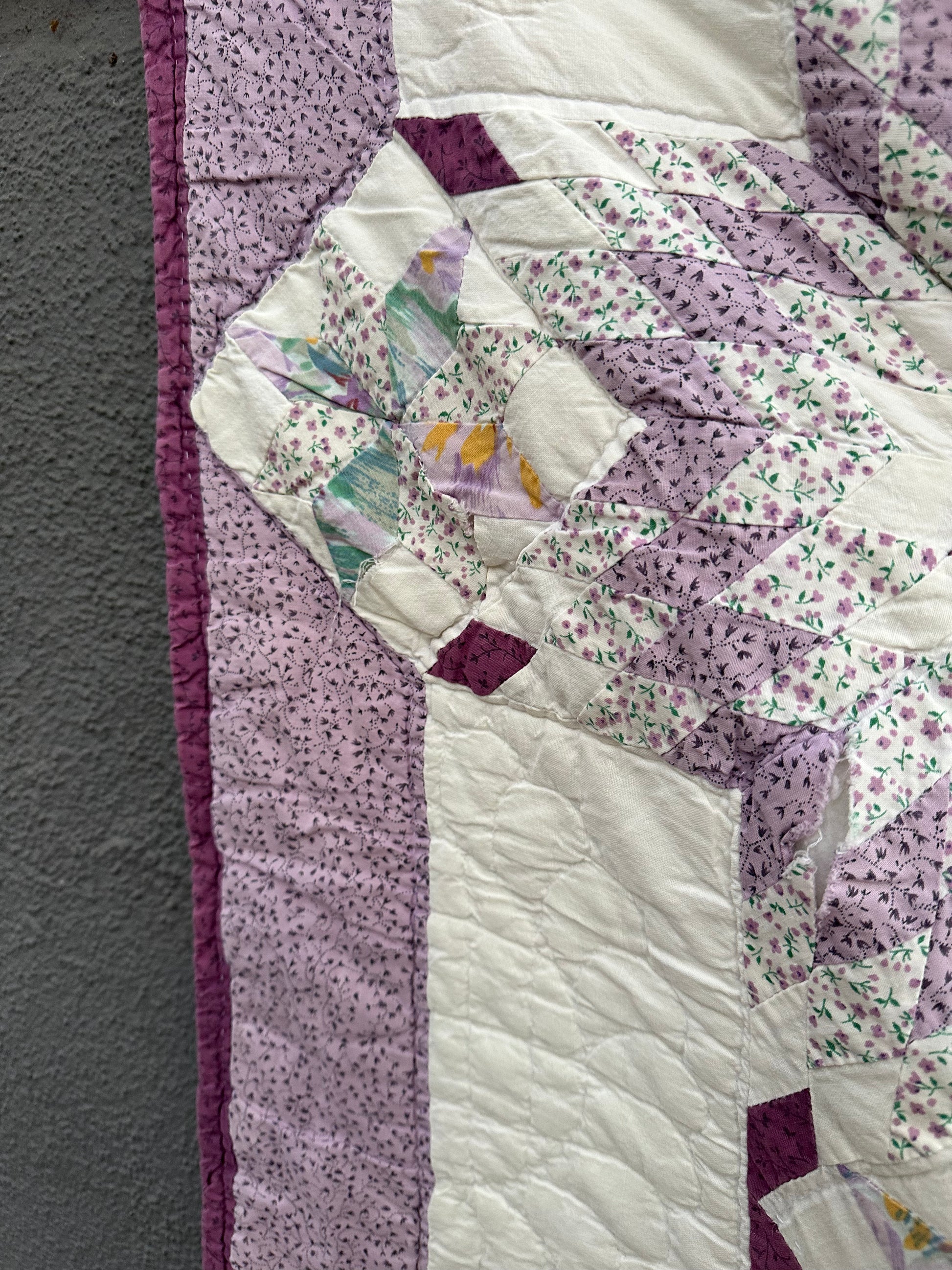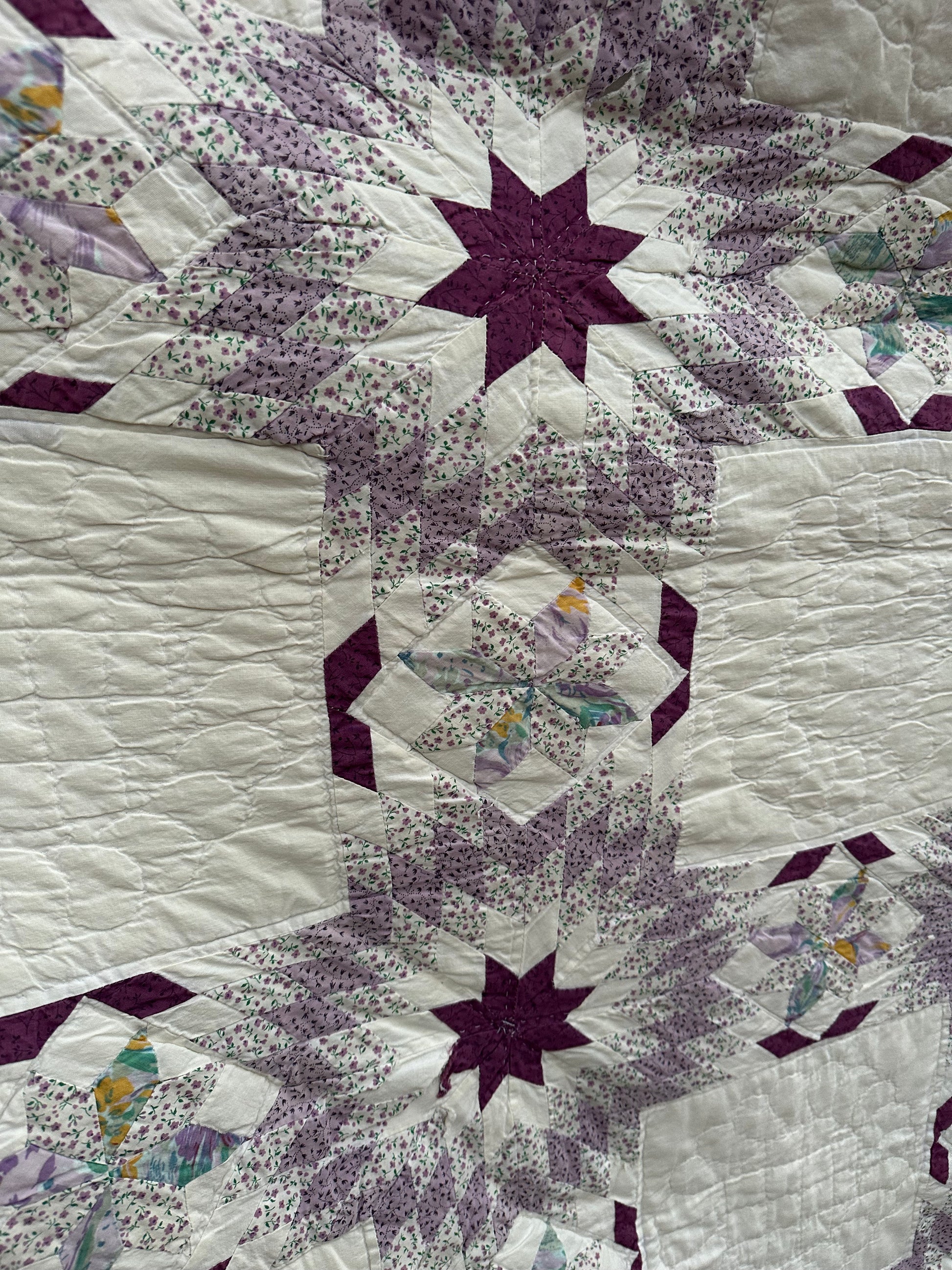 Wonderful 1930’s Cotton hand stitched quilt. Very nice lilac tones. Medium weight.