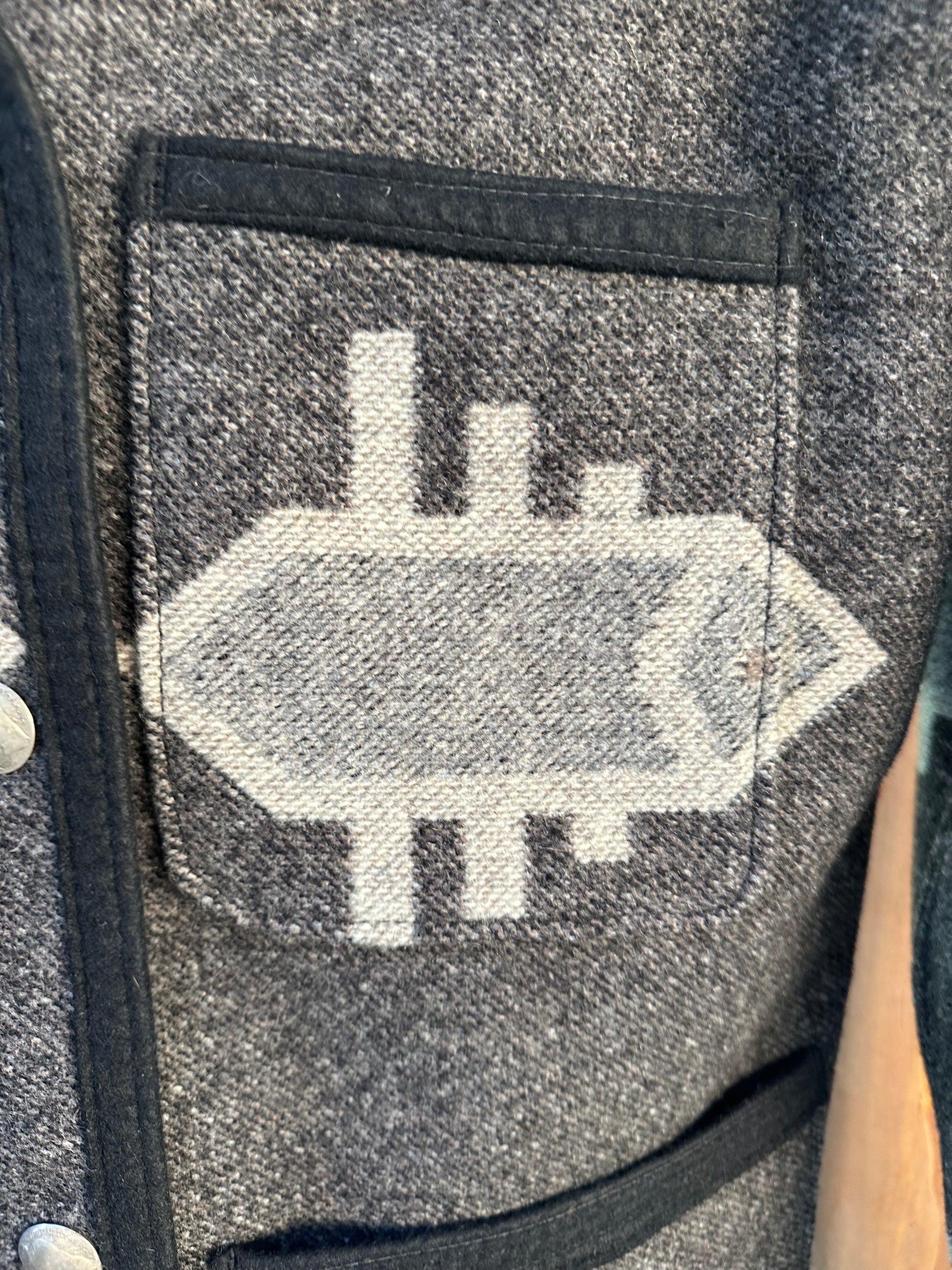 Crafted from a vintage Pendleton®  blanket. Silver Buffalo nickel buttons! Original edge binding. Size medium. Two outside pockets, one inside with an extra button. Reversible too!
