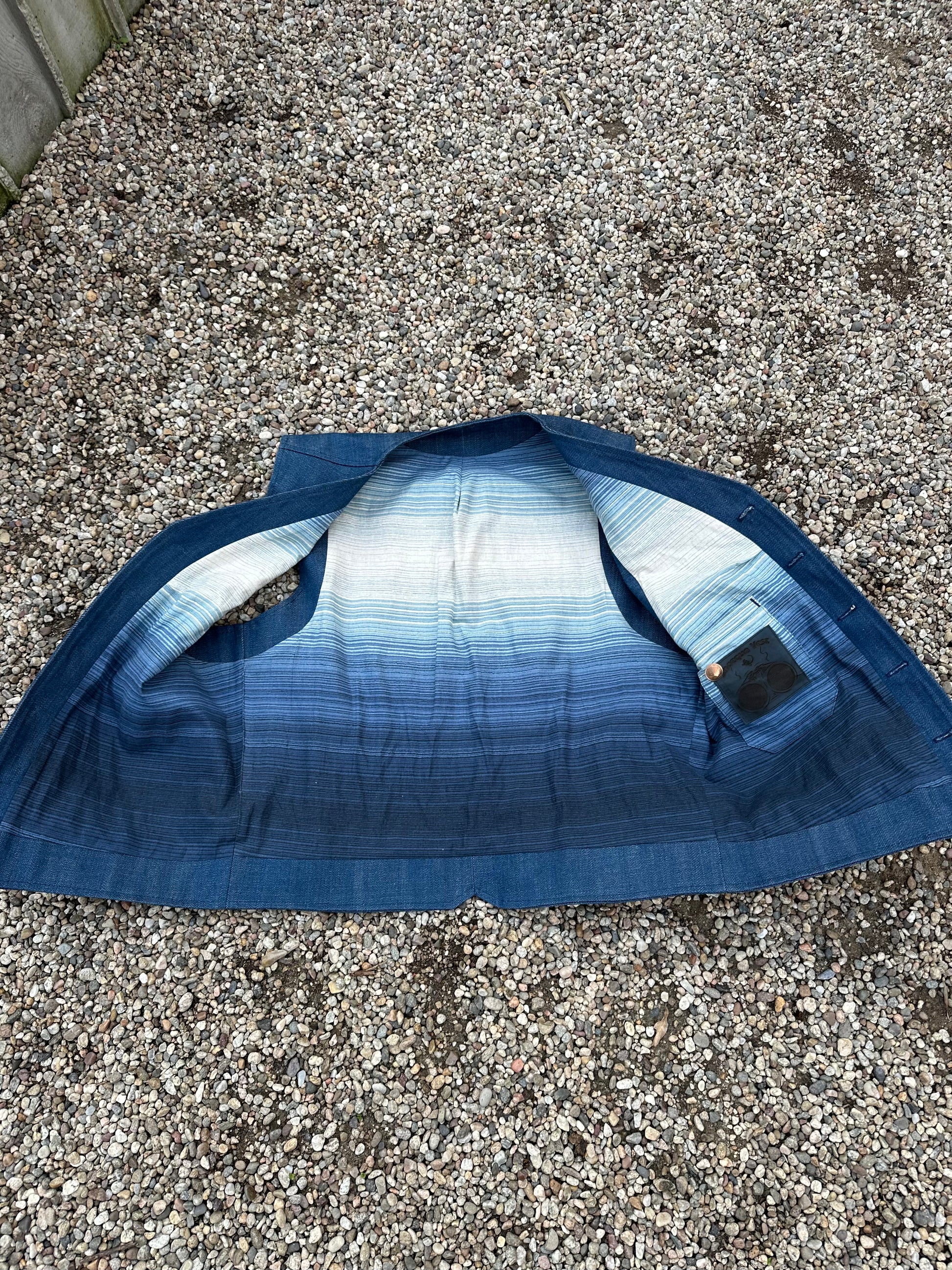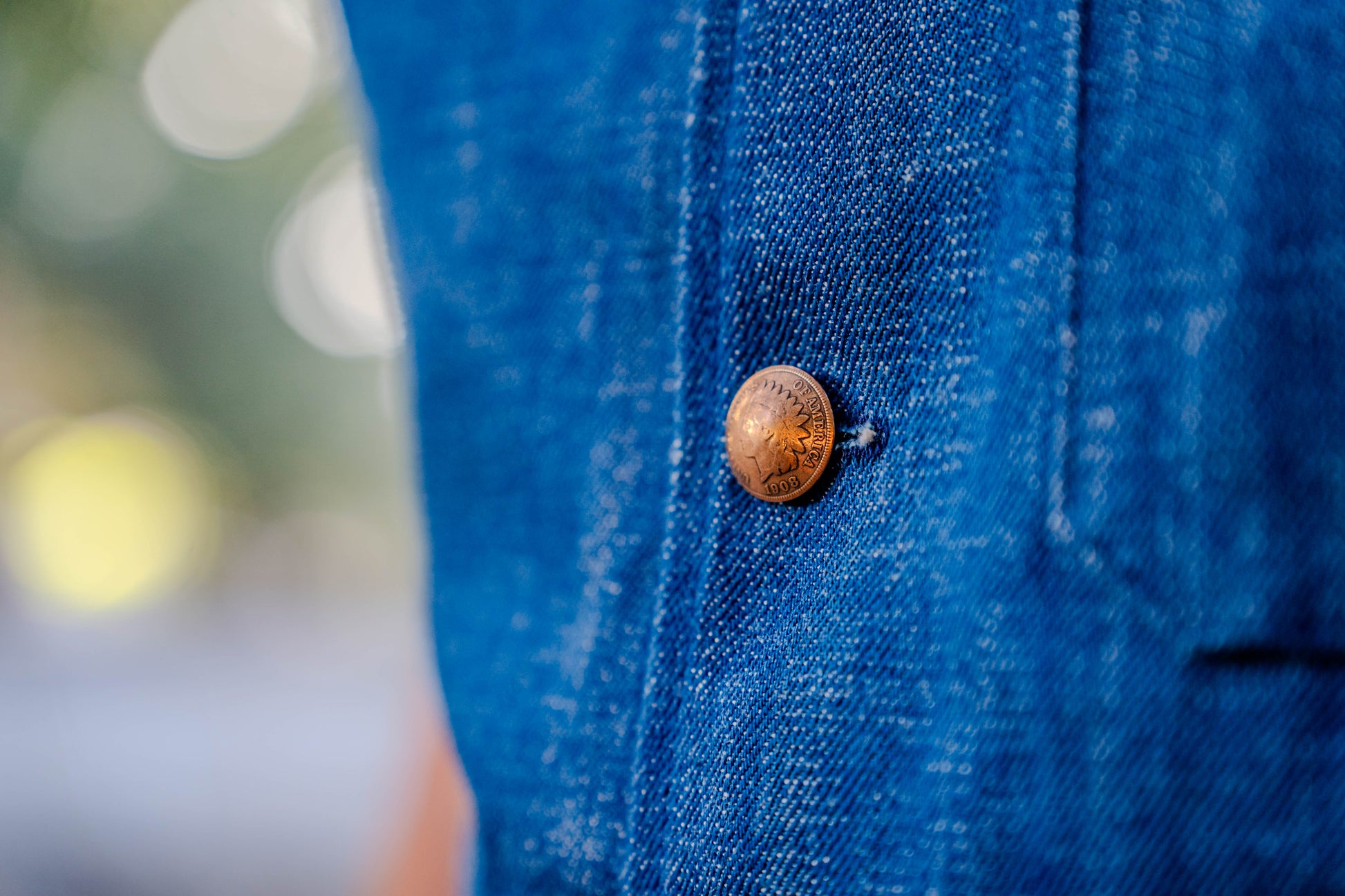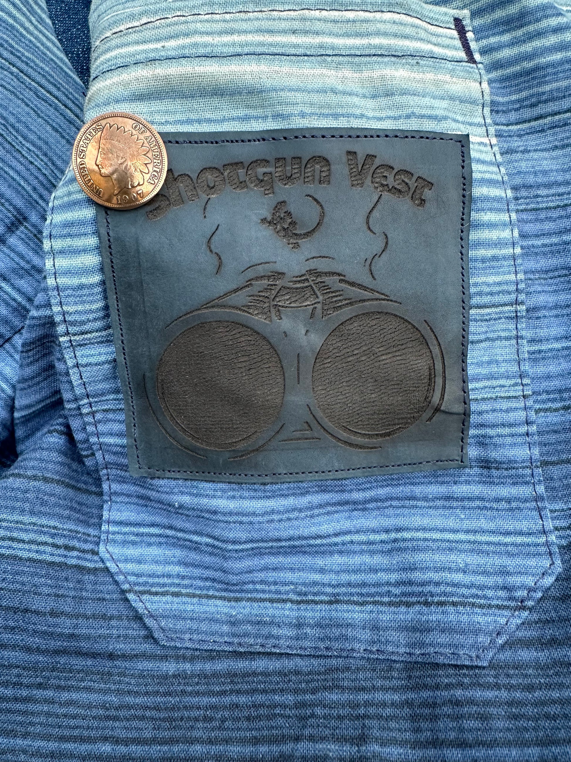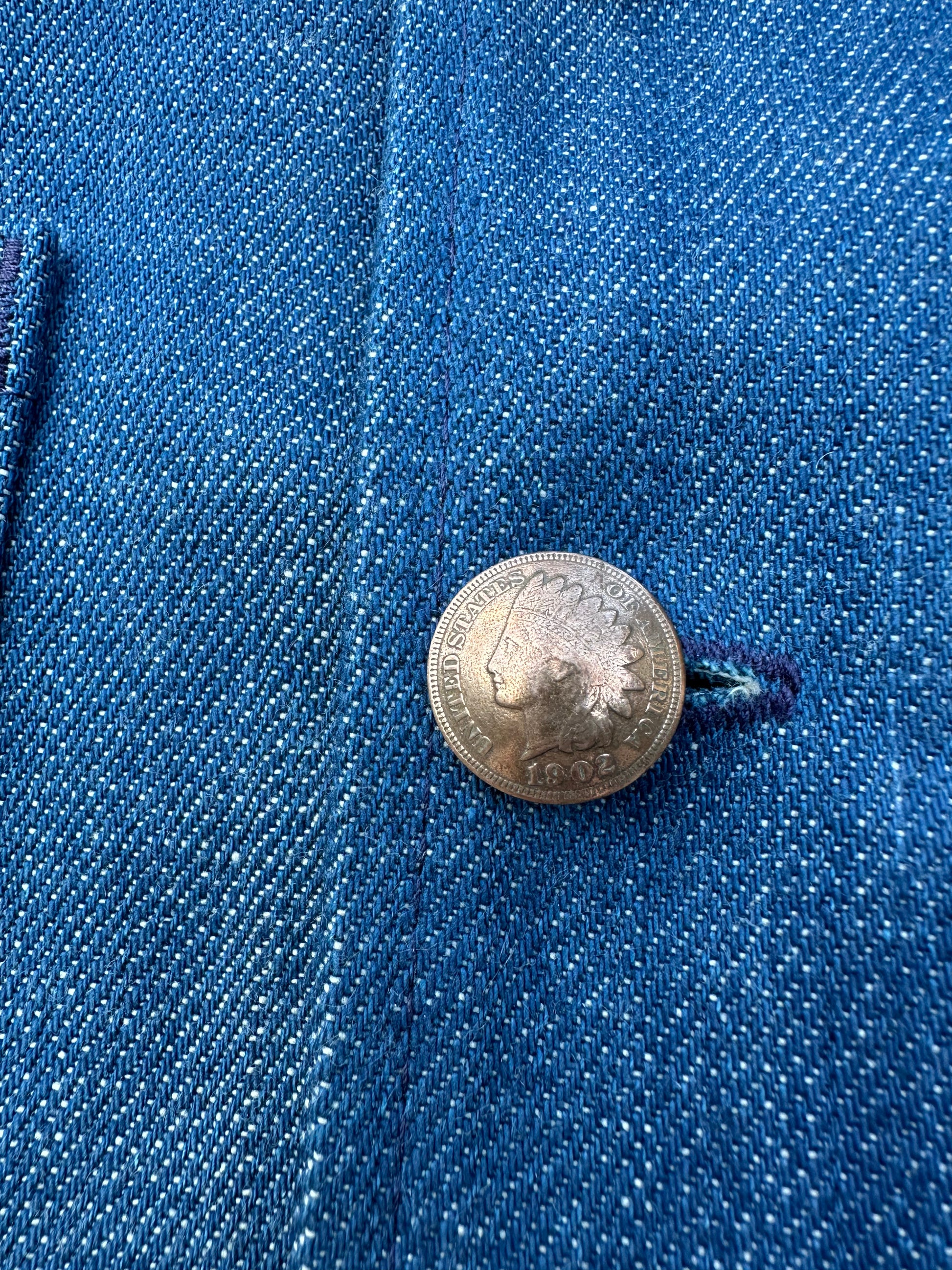 This Vest was crafted from new Italian denim. Lined in Japanese indigo cotton. Vintage copper penny buttons . Size is large. One of one!