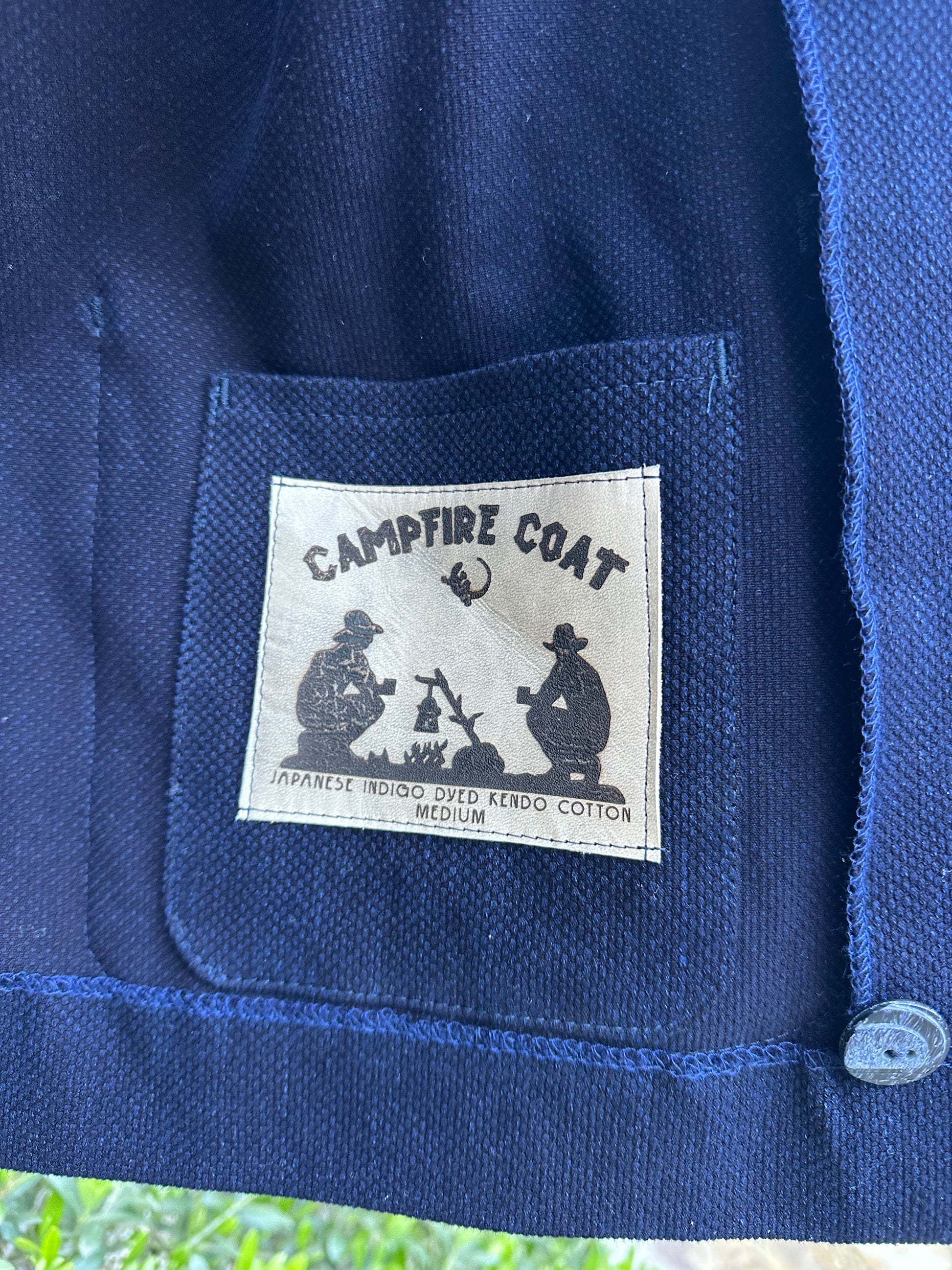 This Japanese Kendo Indigo Cotton Campfire Coat is a unique piece. Vintage buttons, Nehru collar (happy up or down). This is a traditional Japanese material not made by a few mills these days. Impossibly high quality fabric, soft yet sturdy. Beautiful finish! Size medium. I have more of this fabric too!