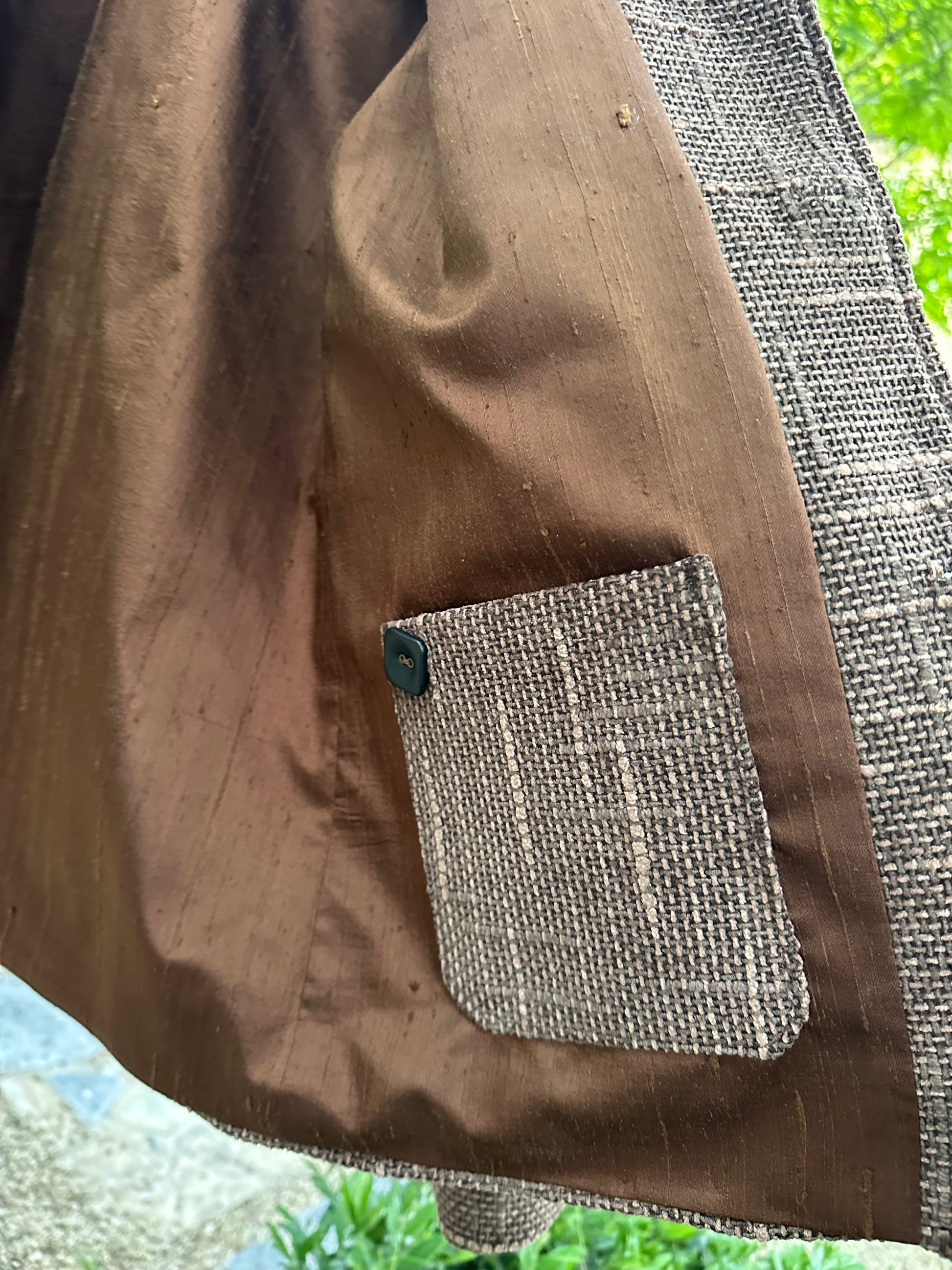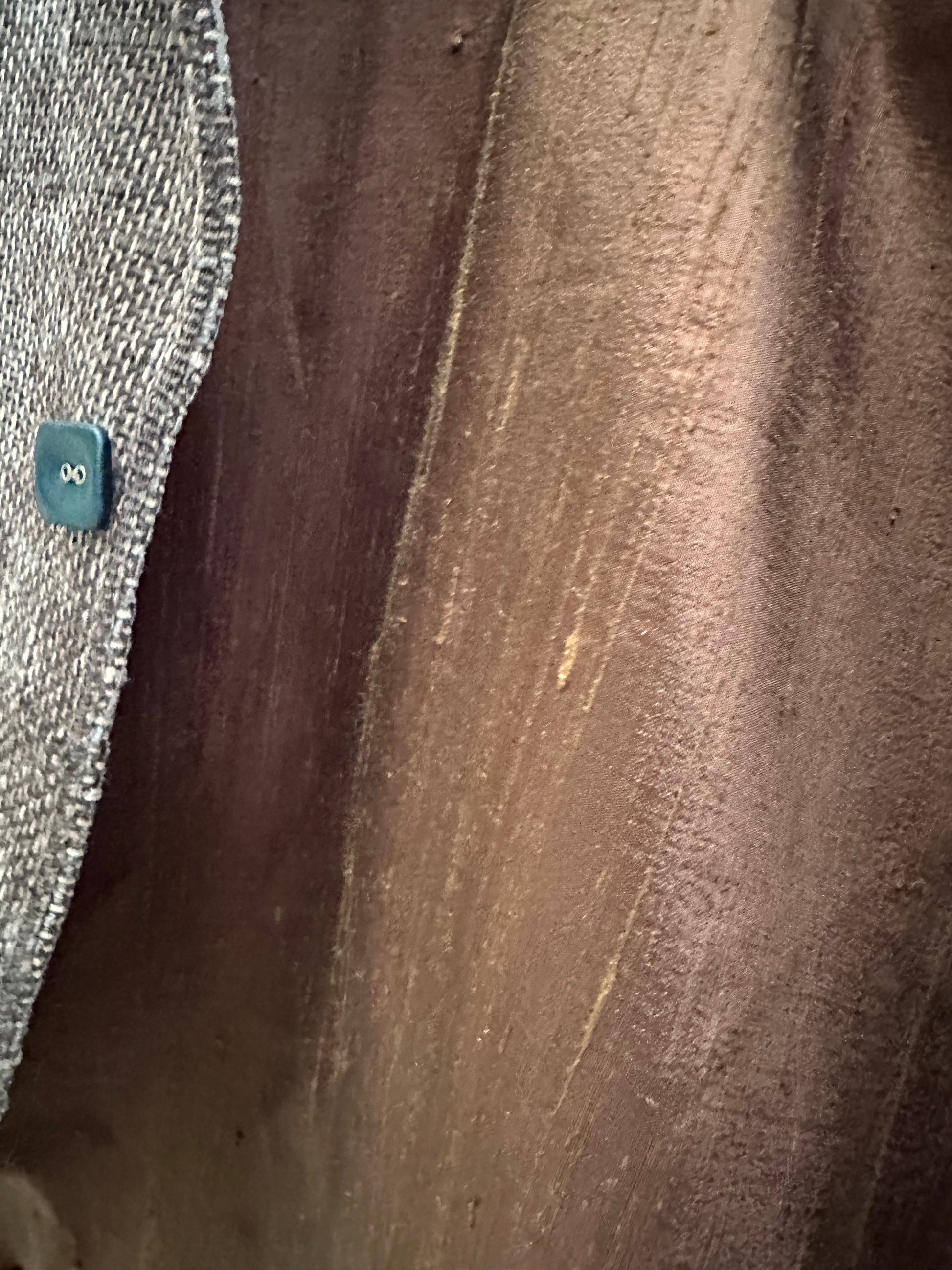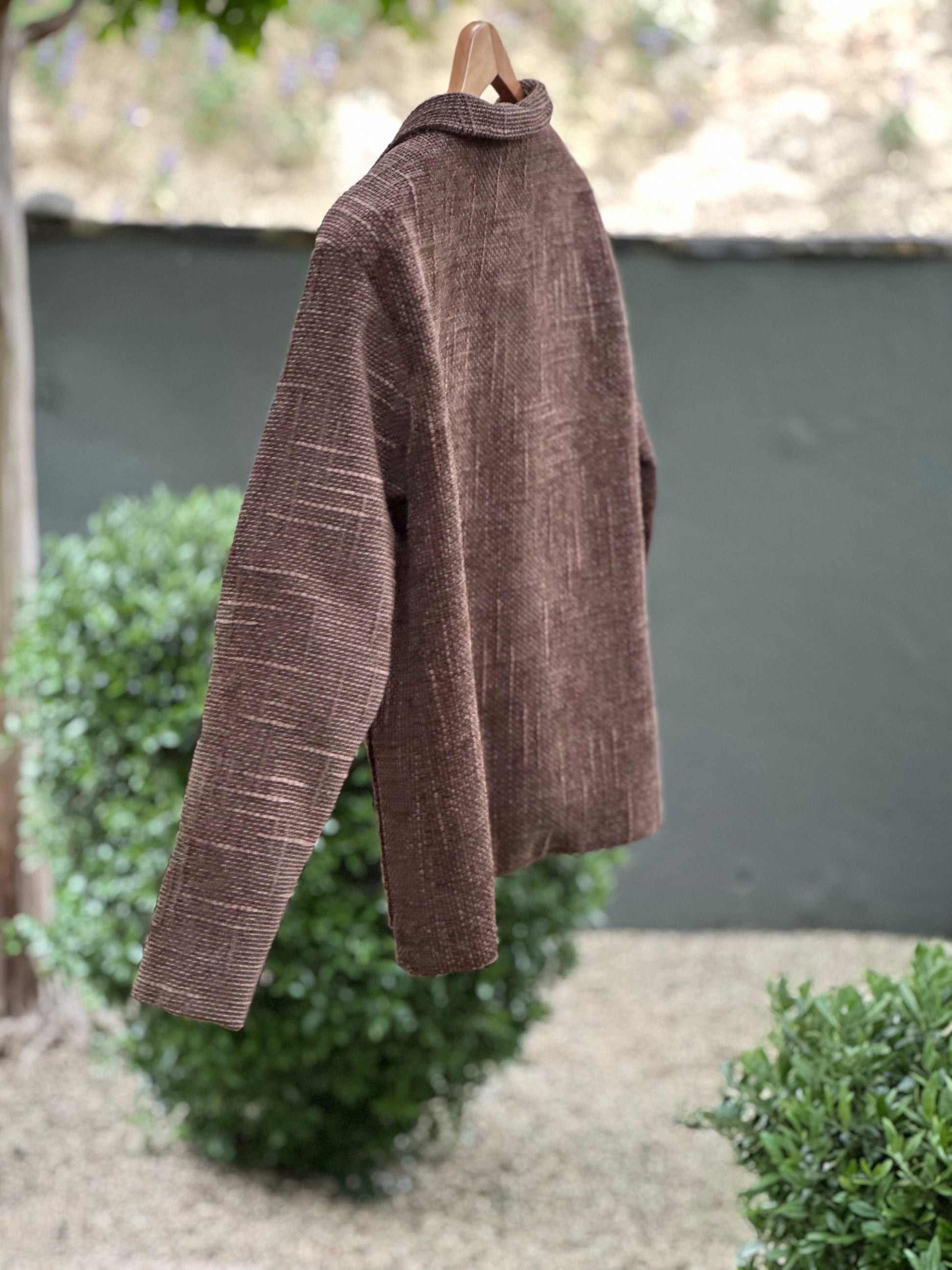 This Japanese Kendo Brown mud dyed Cotton Campfire Coat is a unique piece. Leather buttons, Nehru collar (happy up or down). This is a traditional Japanese material not made by a few mills these days. Impossibly high quality fabric, soft yet sturdy. Lined in vintage kimono silk. Beautiful finish! Size medium. I have more of this fabric too!
