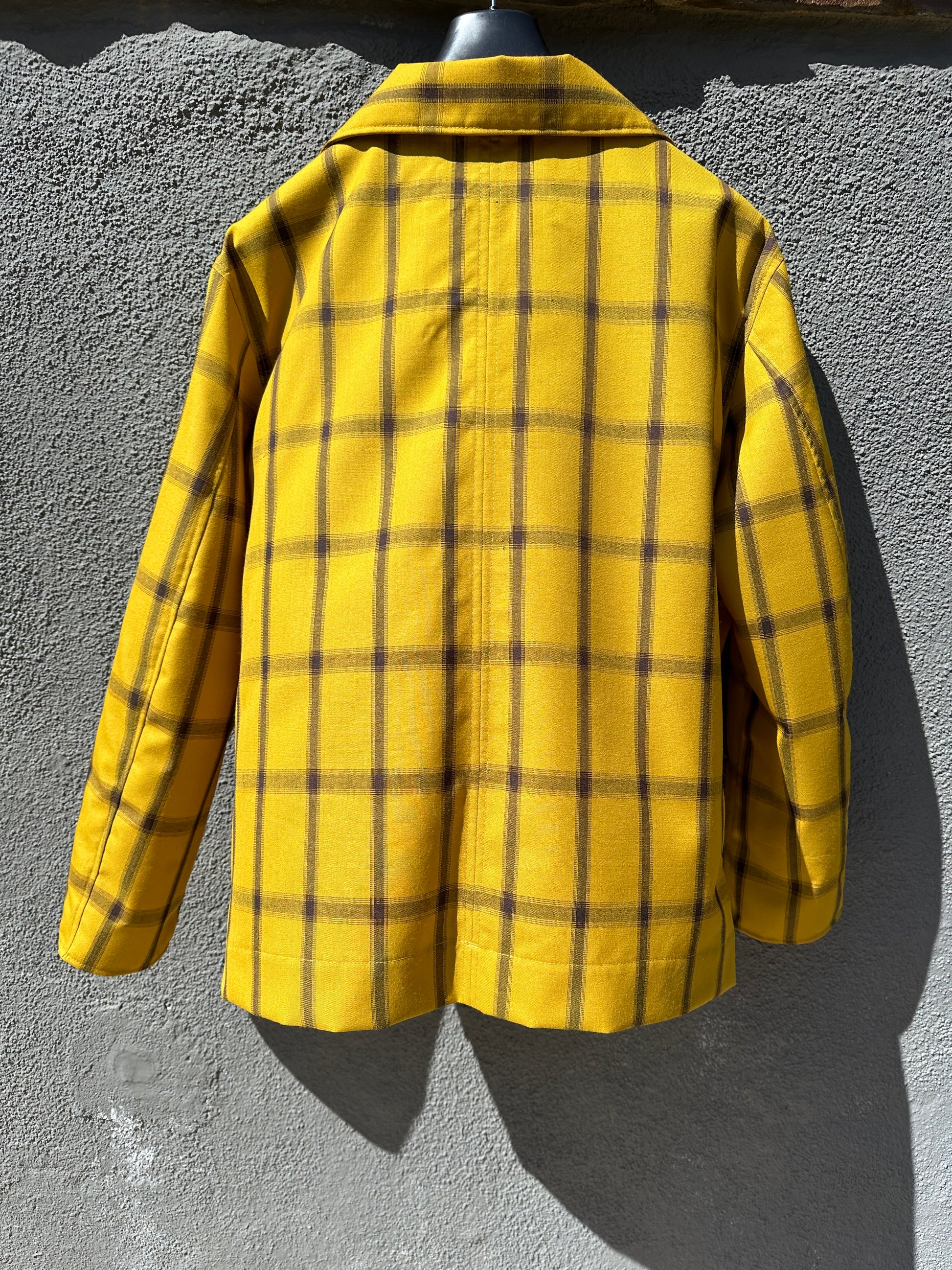 Japanese Kimono NOS 1940’s Yellow and Brown hand made Wool Plaid Jacket