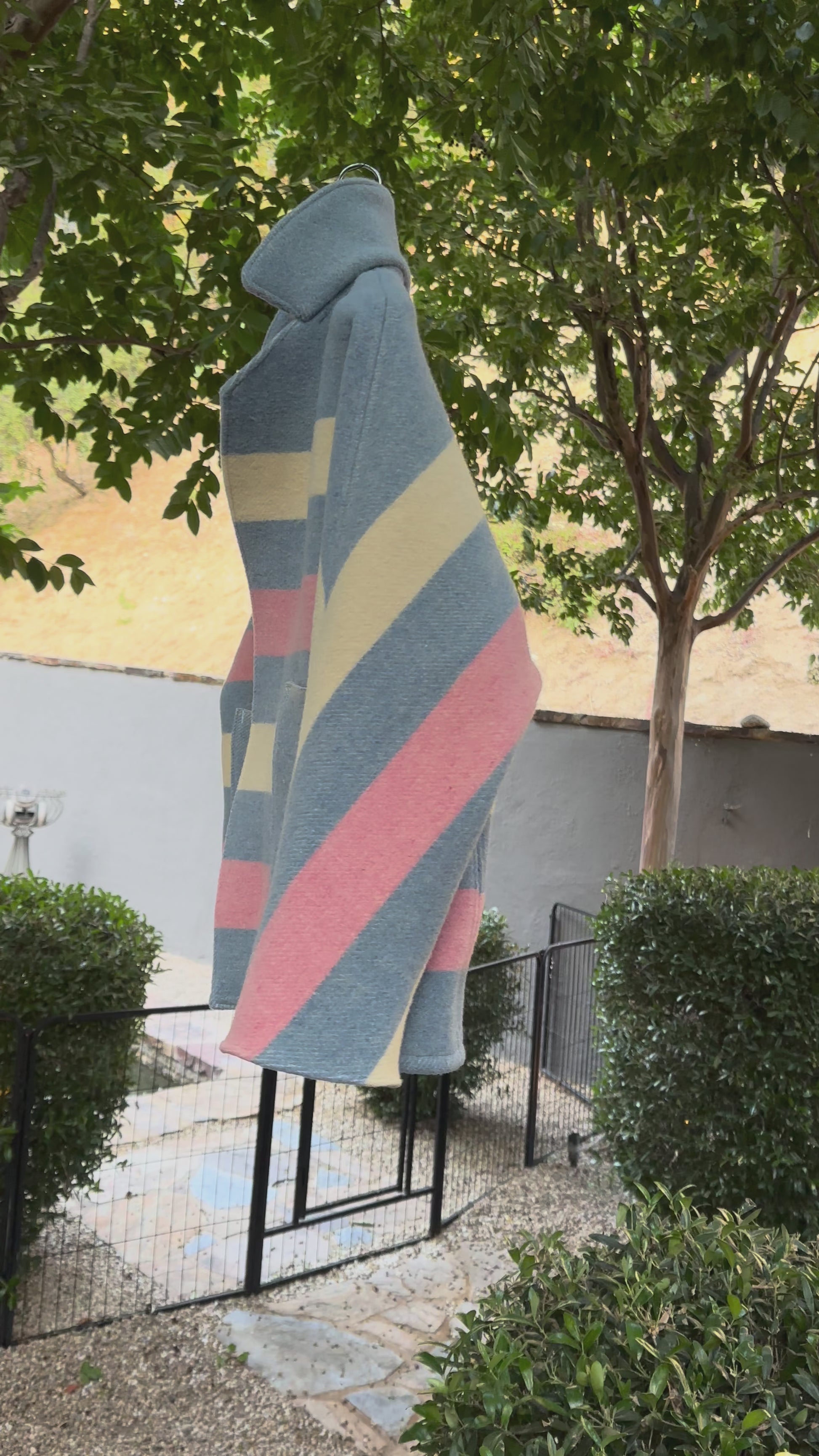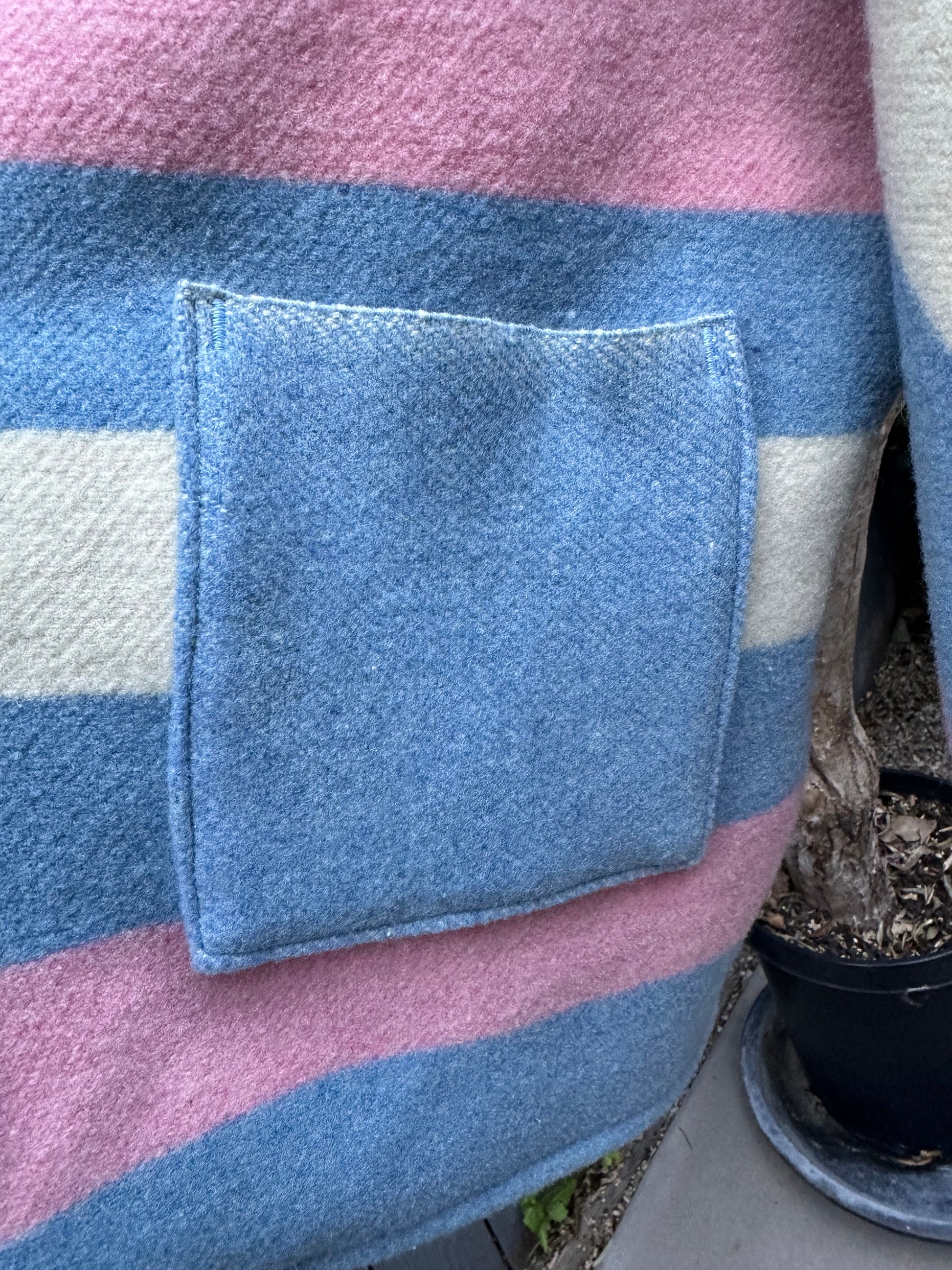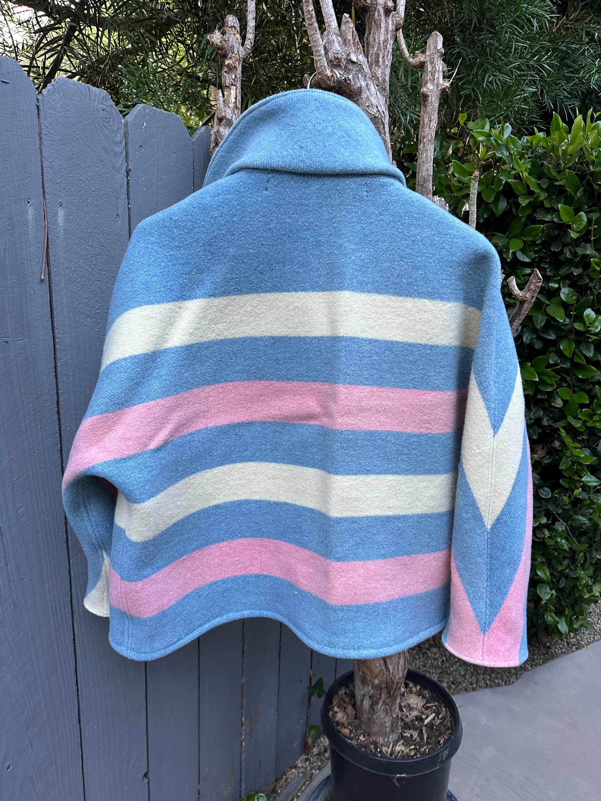 This is an exceptional MCM American Jaquard Wool Campfire Coat. Medium Women’s size. Crafted from a 1950’s-1960’s blanket. Wonderful material, excellent condition. No buttons, two exterior pockets. I loved the simplicity without, but could add buttons if you would prefer. Size is woman’s medium. Loose fit with ragland shoulders. One of one!