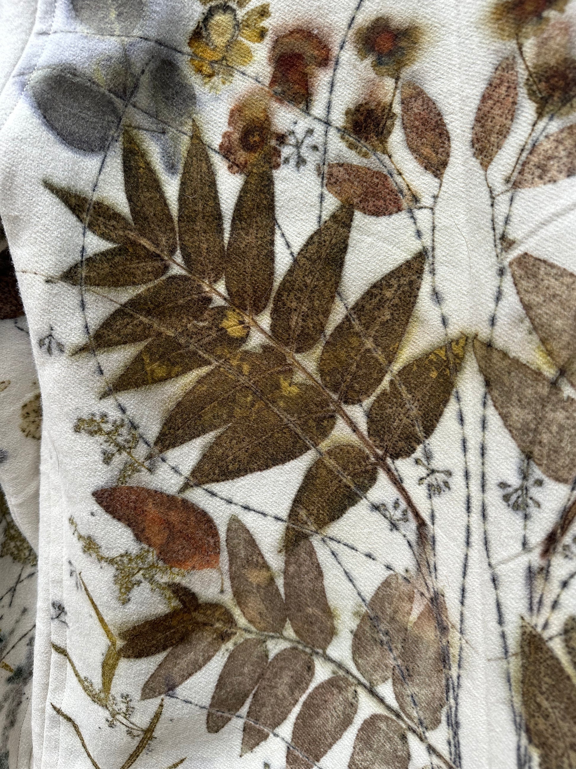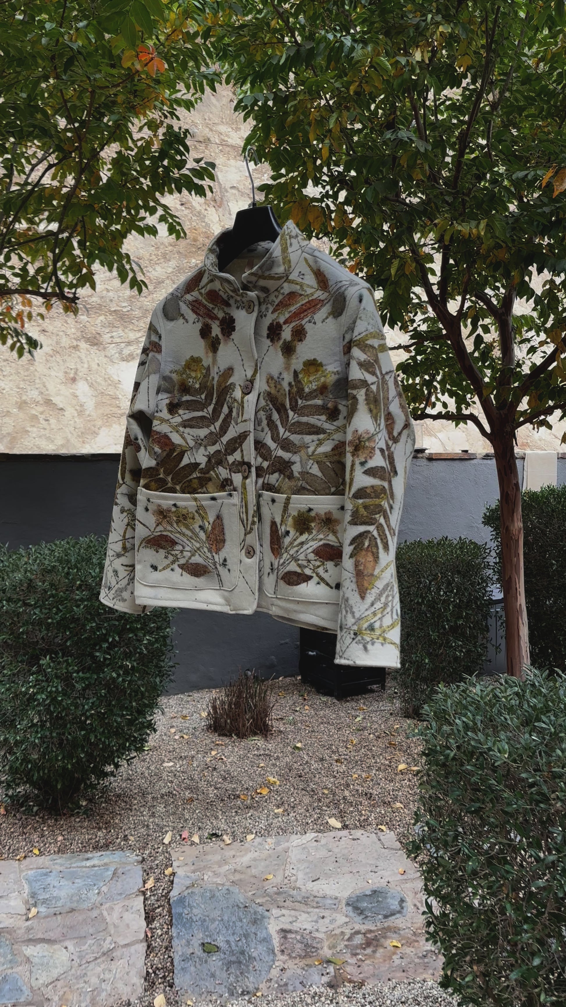Pendleton Wool Hand Dyed Botanical Campfire Coat. Light weight, timeless, one of a kind. Unique vintage shell buttons. Size is medium. A special collaboration with my artist friend, Mayumi! Nehru collar.