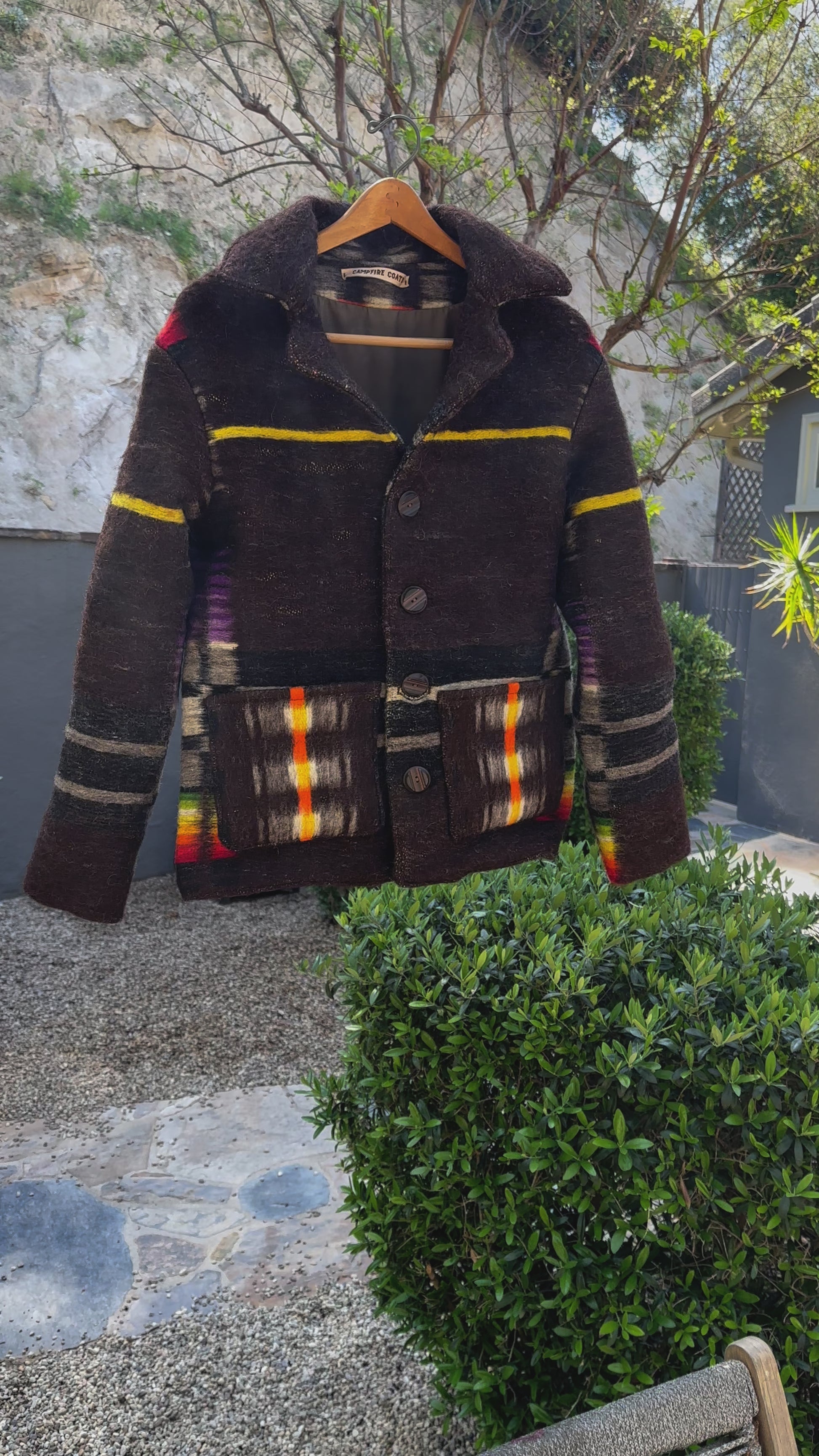 Pre-war Jacquard Wool Blanket Campfire Coat Medium