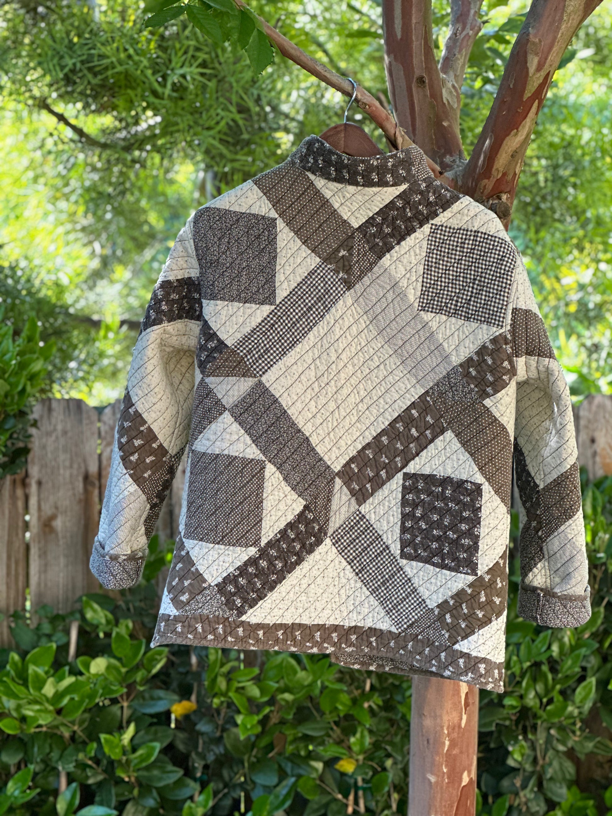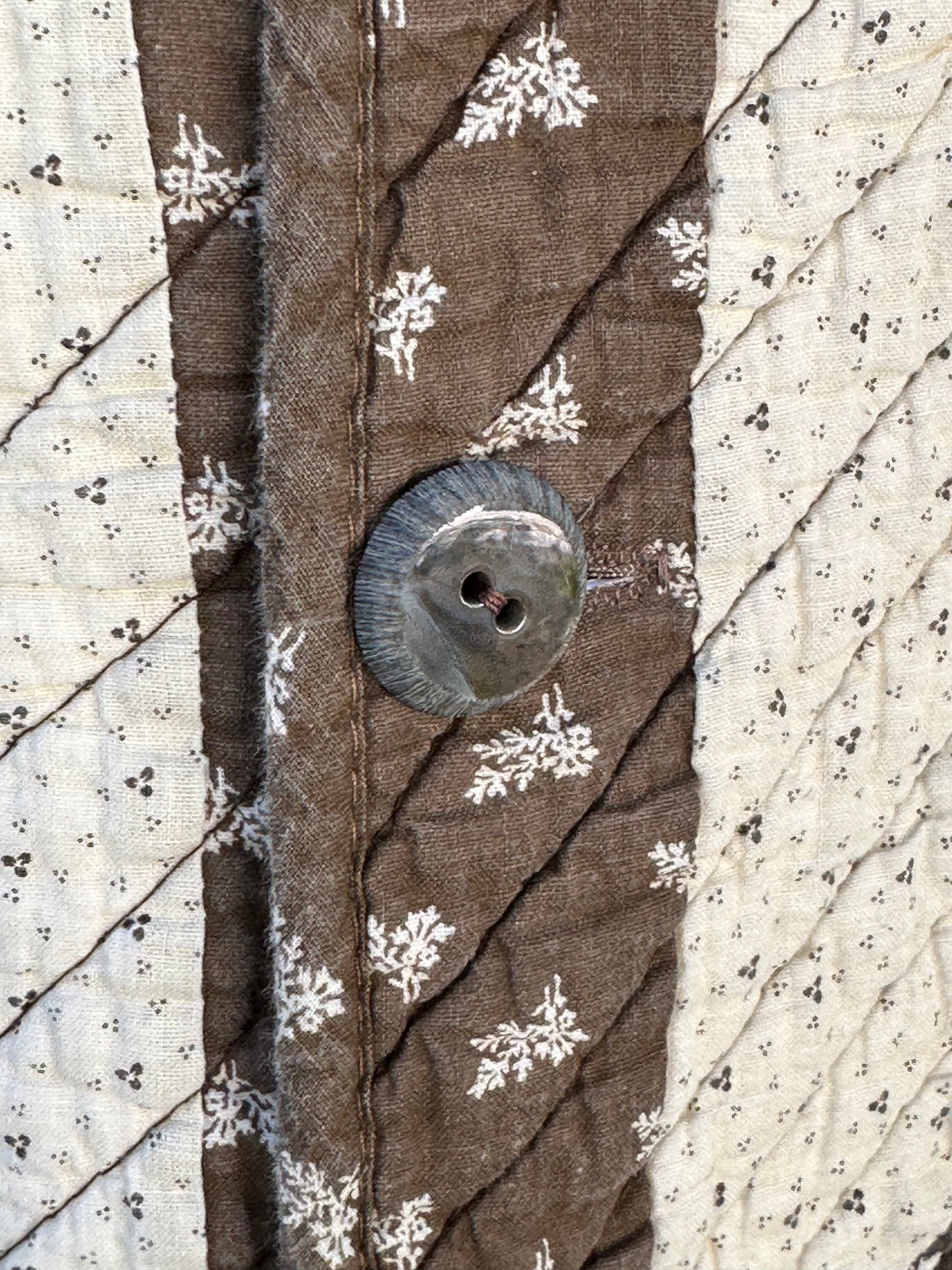 This beautiful Pre-WWII Cotton Quilt Jacket is crafted from a quilt handmade in Ohio. Excellent condition and the fit is like a hug! Unique horn buttons. Size is medium. One of one!