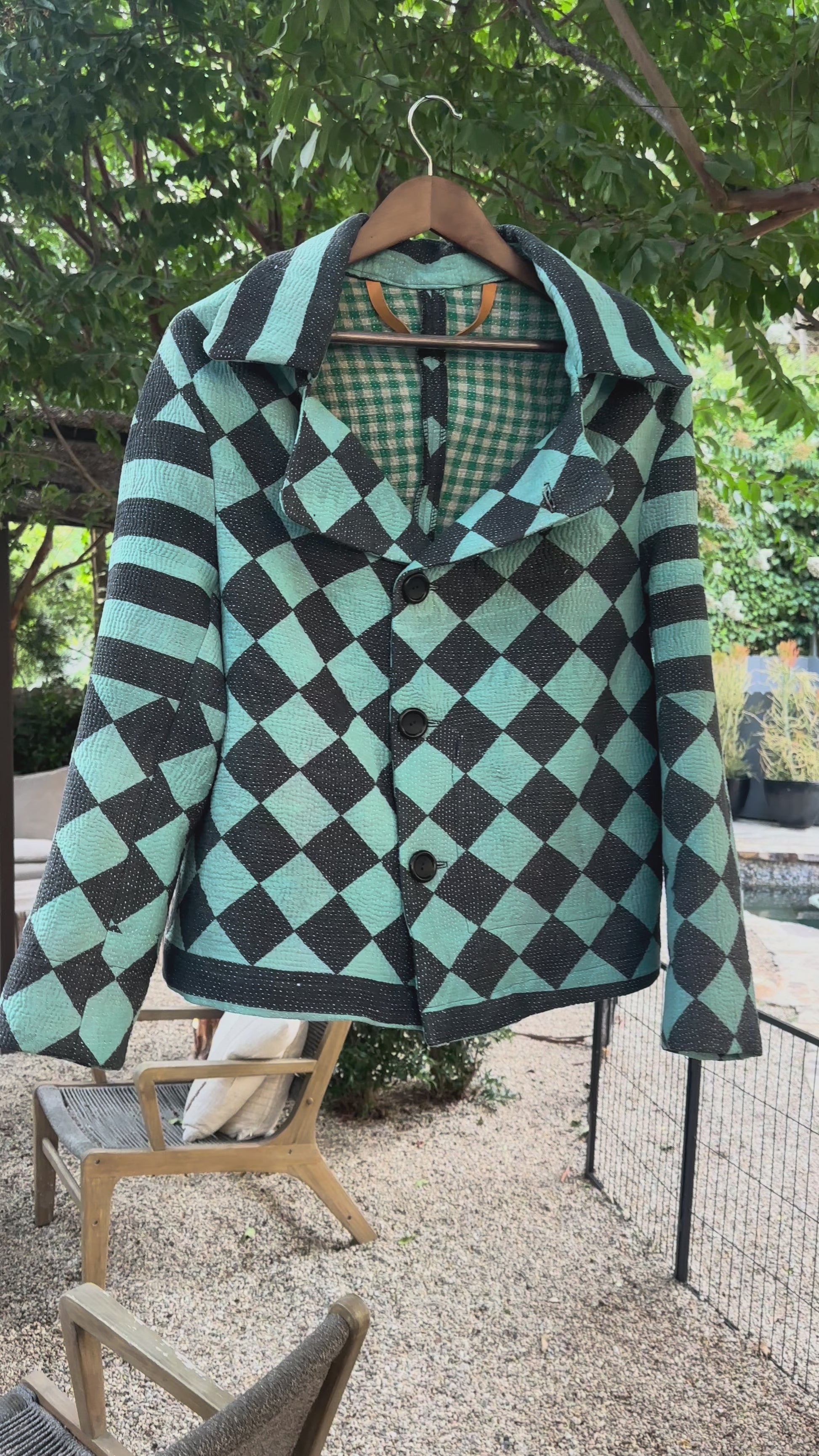 Vintage Indian Cotton Kantha Blanket Campfire Coat Medium